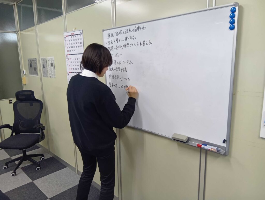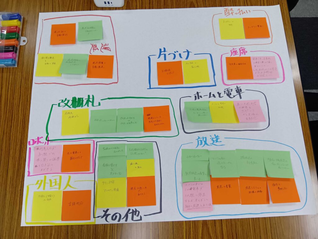 参加者の大学生の皆さんには、駅構内の業務の中で省人化できるポイントを洗い出し、