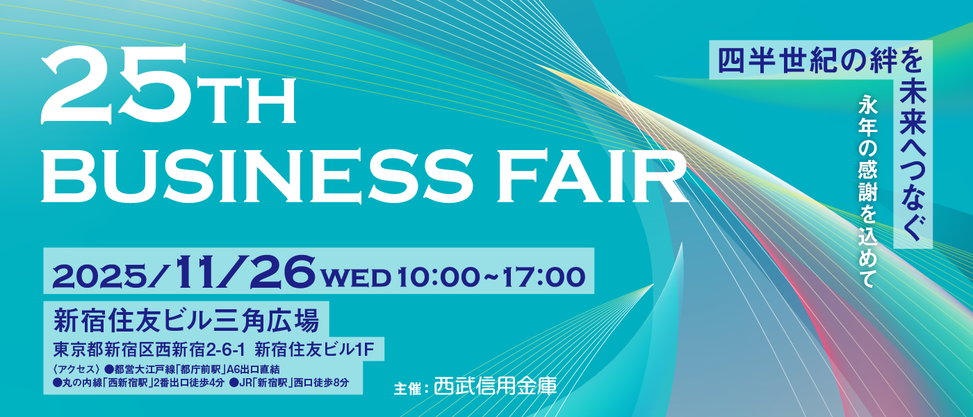 当社、株式会社MEMOテクノスは、西武信用金庫様主催の「第25回ビジネスフェア」に出展いたします。 続きを読む...