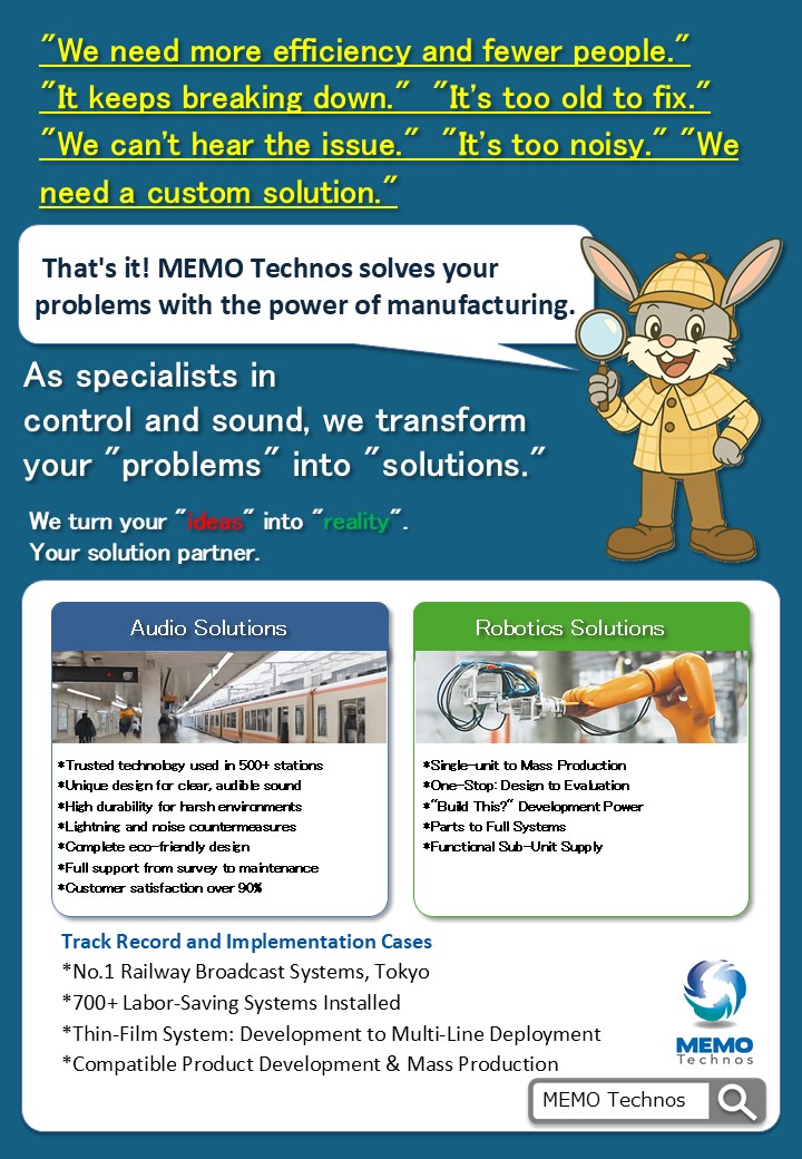 神奈川県相模原市のシステムインテグレーター。自律移動型協働ロボットやAMR・AGVによる工程間搬送、IoTシステムによる情報可視化や工程改善など、省人化の各種ソリューション。